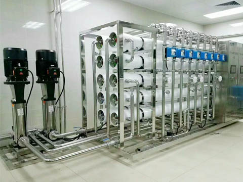 反滲透是當(dāng)今先進(jìn)、有效、節(jié)能的膜分離技術(shù),與先置預(yù)處理系統(tǒng)配套使用,具有工藝先進(jìn)、操作簡(jiǎn)便、運(yùn)行費(fèi)用低、無(wú)污染、維護(hù)方便等優(yōu)點(diǎn)。利用反滲透膜的半滲透,即只透過(guò)水,不透過(guò)鹽的原理,外加高壓克服水中淡水透過(guò)膜后濃縮成鹽水的滲透壓,將水“擠過(guò)”膜。水分成兩部分,一部分含有大量鹽類的鹽水,另一部分含有極少量鹽類的淡水。反滲透系統(tǒng)是利用高壓作用通過(guò)反滲透膜分離出水中的無(wú)機(jī)鹽,同時(shí)去除固體溶解物、有機(jī)物、膠體、微生物以及細(xì)菌,截留水污染物。